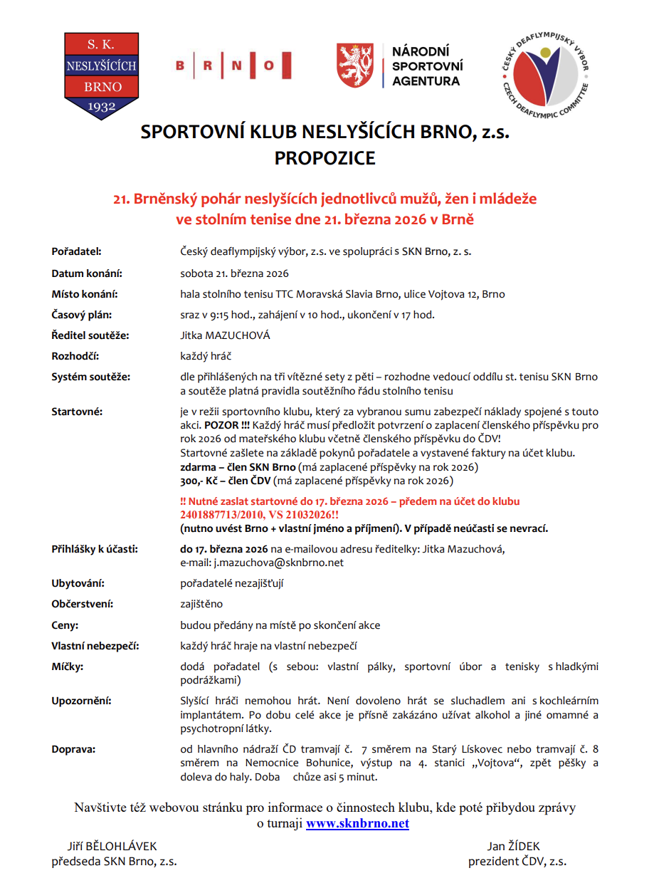 Termín pro podání přihlášek je do 17. 3. 2026. Více informací v propozicích níže.