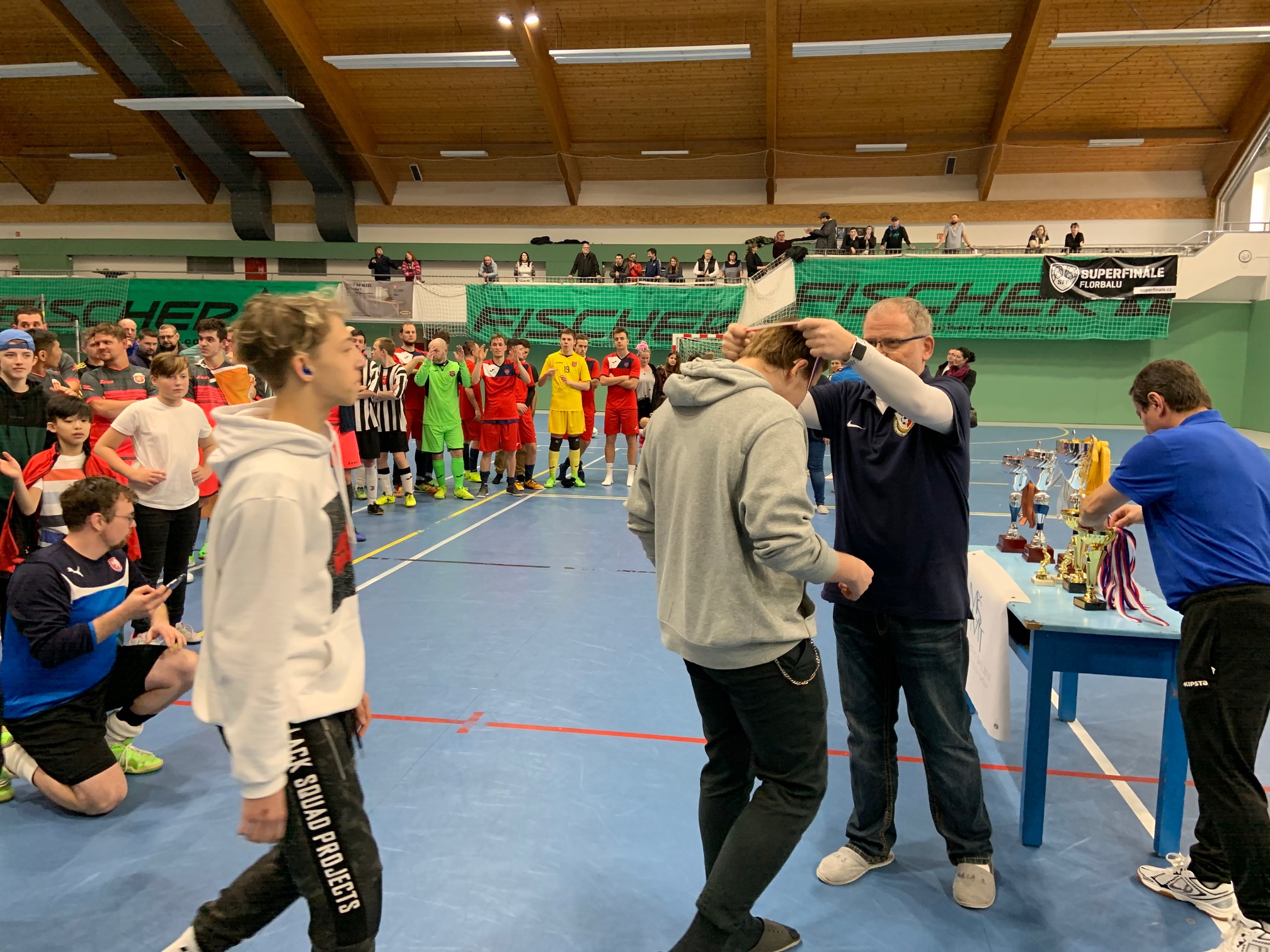 Sestava našeho týmu se skládala z těchto hráčů - Kiss Patrik, Brzybohatý Daniel, brankář Říha František, Machánek Karel, Garner Benjamin, Novotný František a kapitán Fischkandl Lukáš. 1 zápas trval 2x15 minut.