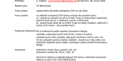 Zveme všechny zájemce na MČR neslyšících v šachu – rapid, které se bude konat 7.3.2026 v Brně. Více informací v propozicích níže.