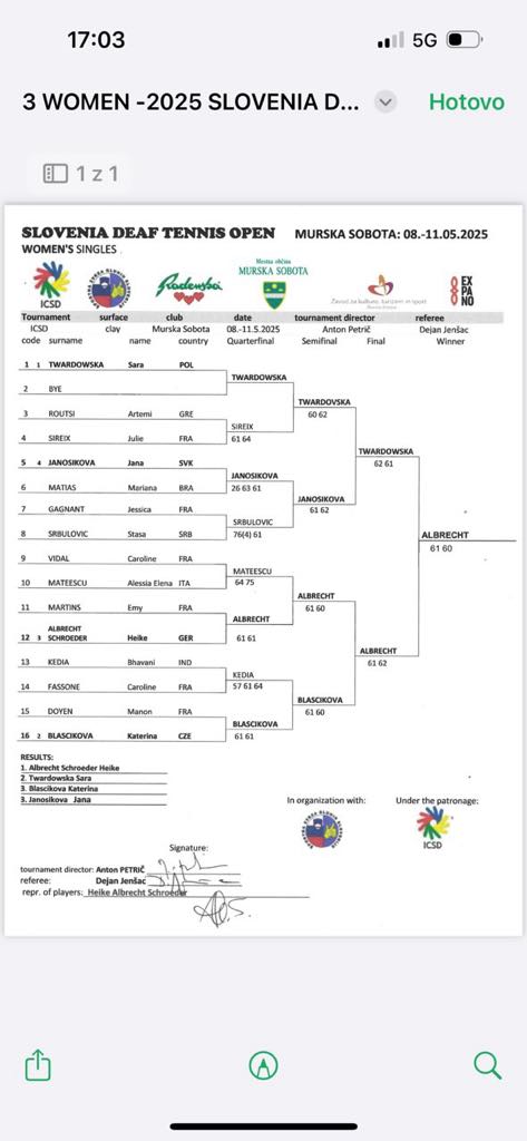 Česká stopa na turnaji Slovenia Deaf Tennis Open 2025