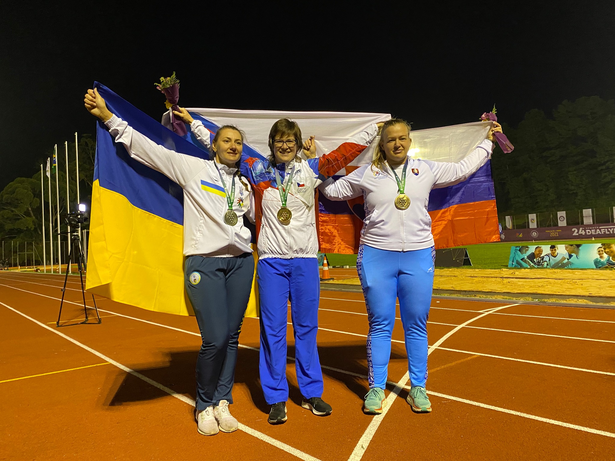 Atletka Lenka Matoušková se na svůj 3. deaflympijský start pečlivě připravovala. V závodu hodu diskem chtěla aktuální držitelka deaflympijského rekordu (47,95 m) zopakovat svoje umístění z poslední Deaflympiády. Z původně 10 přihlášených závodnic se k závodu dostavilo 8. V podstatě jedinou konkurencí pro Lenku byla závodnice z Ukrajiny – Ursulenko. Lenka všemi hody přesáhla hranici 40 metrů, ale svým pátým hodem 45,94 metrů si zajistila zlato! Ukrajinku přehodila o více než metr a půl.