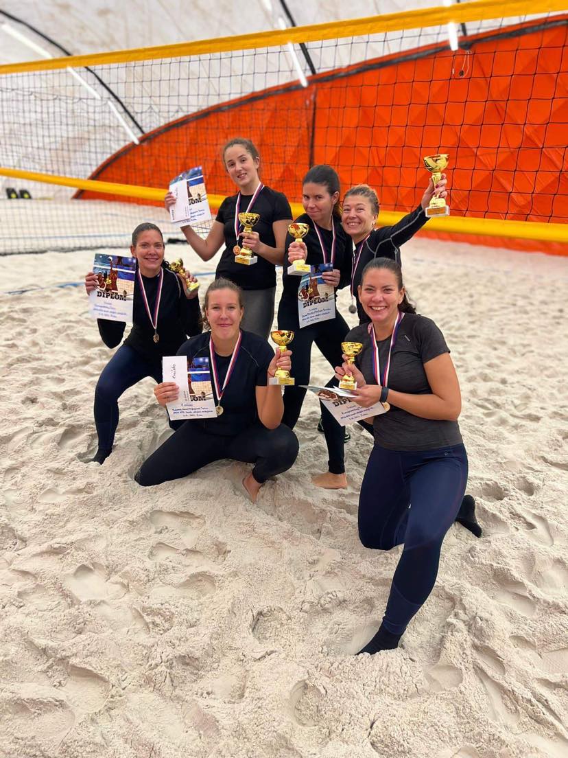 Dne 5.11.2022 se do areálu pražského beachklubu Domyno sjeli hráči z ČR, Německa, Maďarska, Rakouska, Slovenska a Slovinska, aby změřili síly v beachvolejbalovém turnaji, pořádaném SK Olympia Praha SPS. Na zahájení v 9 hodin byli všichni přivítáni předsedou klubu Janem Žídkem a po představení rozhodčích a krátkém vysvětlení systému turnaje a pravidel se mohlo začít. Mužských týmů se přihlásilo celkem 8 a byly rozděleny do dvou skupin po 4. Zápasy mužů ve skupině se jako jediné hrály na 2 vítězné sety do 15, všechny ostatní zápasy se hrály klasicky na 2 vítězné sety do 21. Ve skupině A se na prvním místě po třech jednoznačných výhrách 2:0 umístili Žídek ml./Bambas, na druhém byli rakouský pár otec a syn Kurzmann/Kurzmann, na třetím Lengenwöger/Boy-Schott, a na čtvrtém Mrózek/Hudi. Skupina B byla vyrovnanější, o 1. a 2. místě totiž rozhodovat tiebreak. V tom byli úspěšnější Sudy/Franz, a druhé místo tak získali Žídek st./Skopový. Třetí místo obsadili mladí Němci Boy/Ricke a čtvrté místo Slováci Kluka/Konečník. Bohužel naše dvojice Mrózek/Hudi musela zápasy v playoff skrečovat, a tak skončili na 8. místě. Na 7. místě se umístili Kluka/Konečník. V zápase o 5. místo zvítězili Lengenwöger/Boy-Schott proti Boy/Ricke, kterým tak zůstalo 6. místo. V prvním semifinále proti sobě nastoupily dvě naše reprezentační dvojice – Žídek ml./Bambas a Žídek st./Skopový. Šlo o vyrovnaný zápas, který poskytl spoustu hezkých výměn – nakonec však do finále postoupili Žídek ml./Bambas. Druhé semifinále vyhráli Sudy/Franz nad Kurzmann/Kurzmann. V zápase o 3 místo porazili Žídek st./Skopový rakouský tým Kurzmann/Kurzmann poměrně jasně 2:0 (21:15, 21:15) a mohli se tak radovat z bronzové medaile. Finále Žídek ml./Bambas proti Sudy/Franz poskytlo vskutku zajímavou podívanou – první set vyhráli Němci 16:21, ve druhém se ale naši kluci probrali a vyhráli 21:8. Tiebreak byl opět v naší režii (15:9) a kluci mohli slavit 1. místo. Ženských týmů se přihlásilo celkem 6 a byly rozděleny do dvou skupin po 3. Ve skupině A všechny porazily Žídková/Bočková, druhé místo patřilo Maďarkám Mattyasovszky/Tisza a třetí byly Čechovská/Jurková. Ve skupině B jednoznačně vyhrály Pavlovová/Hojdyszová, druhé byly Šmídová/Cabajová a třetí Hartošová/Strel. Nejdříve se hrál zápas mezi třetími týmy skupin, který vyhrály Hartošová/Strel a obsadily 5. místo. Na 6. místě tak skončily Čechovská/Jurková. Oba týmy, které vyhrály skupinu, potvrdily svou dominanci i v semifinále – Žídková/Bočková porazily Šmídová/Cabajová a Pavlovová/Hojdyszová porazily Mattyasovszky/Tisza. V zápase o 3. místo zvítězily Maďarky Mattyasovszky/Tisza a nechaly tak dvojici Šmídová/Cabajová nepopulární 4. místo. Finále opět nabídlo skvělou podívanou pro diváky – první set zvítězily Pavlovová/Hojdyszová 21:13. Ve druhém setu však došlo k obratu a vyhrály jej Žídková/Bočková 24:22. Následoval vyrovnaný tiebreak, ve kterém se týmy praly o každý bod – o tom svědčí i skóre 26:24 (tiebreak se hraje do 15 bodů o 2), se kterým vyhrály Pavlovová/Hojdyszová. Stříbro získaly Žídková/Bočková. Po dohrání finálových zápasů následovalo předání ocenění (medaile, poháry, diplomy a poukazy). Celkově se jednalo o velmi povedený turnaj, zahraniční účastníci si jej chválili a rádi by příští rok přijeli zase. Dne 9.11.2022 v Praze Zpracovala: Anna Pavlovová