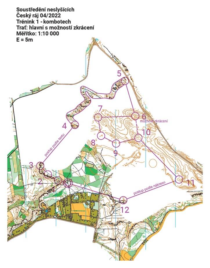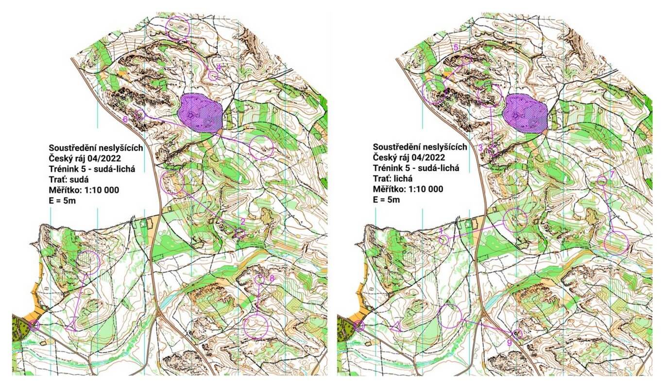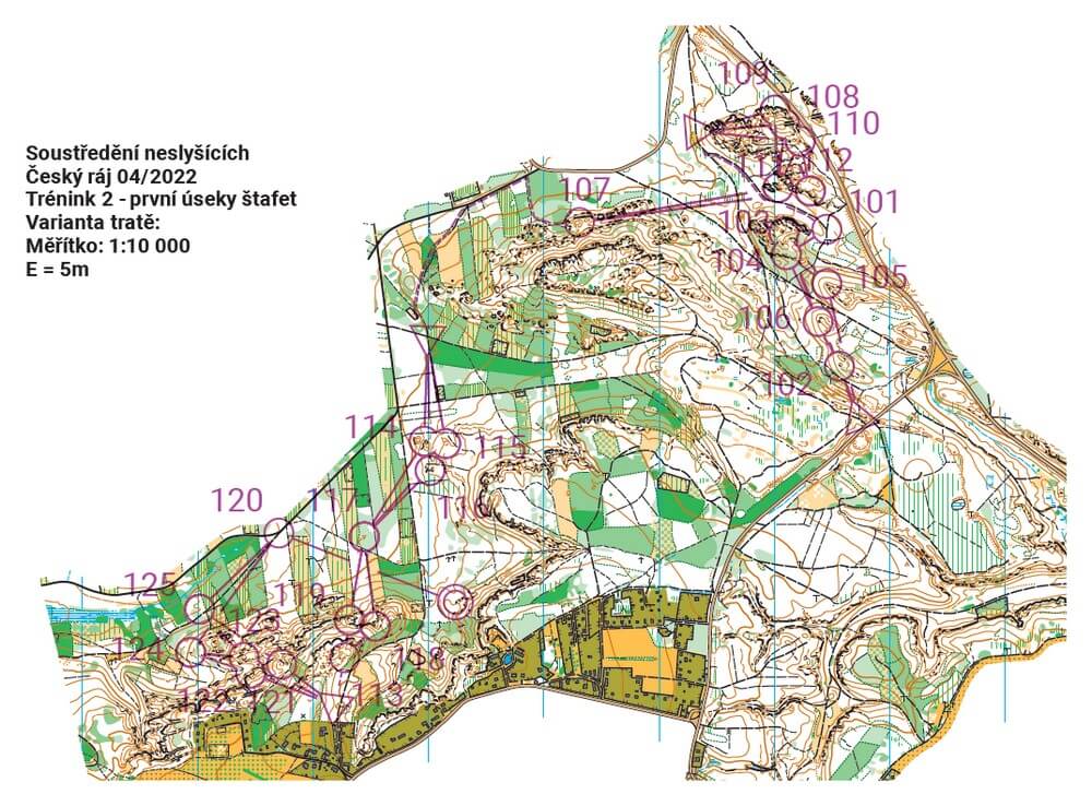 Po 1. kole Českého poháru neslyšících v orientačním běhu v neděli 10. dubna 2022 se část sportovců přesunula do Rytířovy Lhoty v CHKO Českém ráji, kde začalo týdenní soustředění v orientačním běhu, které pro nás připravil náš reprezentační trenér Adam Hájek. Zároveň to byla příprava české neslyšící reprezentace na Deaflympiádu. Náš člen Kamil Klíma se z rodinných důvodů nemohl zapojit hned v neděli, ale až v pondělí večer. Pro všechny účastníky připravil trenér celkem 7 tréninků. V neděli odpoledne byl na programu seznamovací klus s mapou pro načtení způsobu mapování skal v okolí hradu Kost, v pondělí se začalo naostro dopoledním kombotechem¹ a odpoledními hromadnými starty (první úseky)² na mapě Kost. Vysvětlení naleznete na konci článku. V úterý byl na programu dopolední super sprint relay³ dvojic a odpoledne klasický sprint. Oba tréninky se běžely v centru Mladé Boleslavi v prostoru světového poháru z roku 2018. V super sprint relay byly trenérem určeny tyto dvojice 1) Anna Pangrácová - Josef Procházka, 2) Kamil Klíma - Jan Semerád, 3) Lenka Hornová -  Marek Spilka. První dvojice roli favorita nepotvrdila a byla poražena druhou dvojicí, třetí dvojice zůstala na stejné třetí pozici. V odpoledním klasickém sprintu se Kamilovi nedařilo a zůstal čtvrtý se ztrátou 3 minuty na prvního. Stejný sprint si před 14 dny zaběhl také český slyšící reprezentant orientačního běhu Jakub Glonek. Večer nás pak čekal rozbor jeho postupů a dozvěděli jsme se taky, jak u sprintu přemýšlí a v které chvíli si plánuje postupy dopředu. Ve středu byla dopolední sudá-lichá⁴ v Srbsku u Kněžmosti a odpolední krátká trať (middle) na skalních plotnách u Branžeže. U sudé-liché jsme byly rozděleny na 3 dvojice: 1) Lenka Hornová - Jan Semerád, 2) Anna Pangrácová - Kamil Klíma a 3) Josef Procházka - Marek Spilka. Zde se nehrálo o čas, ale spíš o soustředění a zapamatování postupu. Odpoledne se k nám přidal i Mário Červinka ze SKN Hradec Králové a kluci měli větší motivaci v tréninku na krátké trati. Nejlépe zaběhl Marek Spilka, následovaný Honzou Semerádem, třetí pozici uzmul Kamil Klíma, čtvrtý byl Mário Červinka a výsledkovou listinu uzavíral Josef Procházka. Čtvrtek patřil regeneraci a přesunu do Doks na jiné ubytování, kde se k nám připojila Martina Vaňková. Večer jsme měli besedu s Jakubem Glonkem tlumočenou do českého znakového jazyka díky tlumočnici Haně Trskové, kde jsme se ho mohli zeptat na cokoliv. Dozvěděli jsme se především jak Kuba trénuje, jak se připravuje na sprinty a jaký trénink by nám doporučil ke zlepšení. Přesto, že bylo soustředění fyzicky i mapově velmi náročné, tak se všem účastníkům líbilo. V pátek začaly první české třídenní etapové závody v roce 2022 - Velikonoce ve skalách a připojily se další 2 ženy - Vendula Pannová a naše členka Anna Formánková. Rozdělení bylo následující, všichni muži (Jan Semerád, Josef Procházka, Marek Spilka, Kamil Klíma a trenér Adam Hájek) se přihlásili do kategorie H21A, Anna Pangrácová závodila v kategorii D21A, Martina Vaňková s Annou Formánkovou pak v kategorii D21B. Vendula Pannová běžela v kategorii D45B. Anně Pangrácové uteklo o necelou minutu celkové třetí místo v kategorii D21A z 30 závodnic. V kategorii D21B skončila na 5. místě Anna Formánková z 30 závodnic. Vendula skončila na 14. místě ze 34 závodnic v kategorii D45B. Muži to měli těžší, nejlepším umístěním bylo 20. místo Jana Semeráda, pak následovalo 26. místo Josefa Procházky a 28. místo Kamila Klímy ze 42 závodníků. Marek Spilka a Martina Vaňková byli v jedné etapě diskvalifikováni a proto klesli na poslední místa ve výsledcích. Velikonoce Každý večer byl společný rozbor postupů všech závodníků pomocí zapůjčeného projektoru, kdy se rozebíraly chyby a vyzdvihovaly se dobré postupy při jednotlivých trénincích a závodech.  Počasí bylo proměnlivé, v pondělí do čtvrtka bylo krásně slunečno, ale pak se citelně ochladilo a na závodech jsme pomalu cvakali zubama. V neděli po závodě se opět trochu oteplilo.