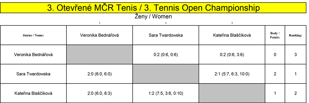 Ženy Sara Twardowska (Polsko) Kateřina Blaščíková (SK Olympia Praha SPS) Veronika Bednářová (SK Olympia Praha SPS)
