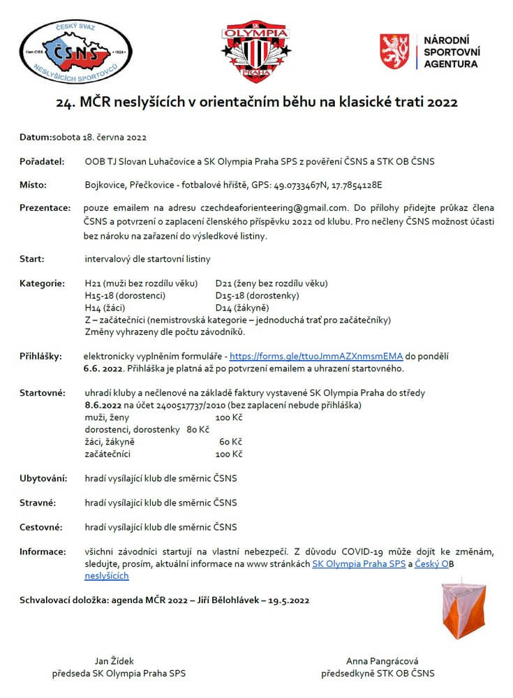 Přihlašování proveďte přes formulář do pondělí 6. června 2022. Pro všechny účastníky mistrovství ČR bude SK Olympia Praha vystavovat faktury.