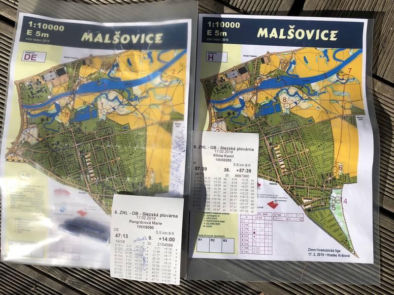 Zimní hradubické ligy - OB, kratší klasika v Hradci Králové. Počasí bylo nádherné, naprostý předzvěst jara. Centrum závodu byl poblíž říčky Orlice a rovinatá trať byla zčásti v parku se spousta říčních meandrů a zčásti v ulicích mezi domky ve čtvrti Malšovice. Oba závodníci běželi stejný okruh dlouhý 5,5 km s 9 kontroly, jen každý v opačném směru. Oba dva zabloudili na stejném místě a ztratili tak užitečné minuty a proto skončili na 61.místě (Kamil) a 20.místě (Marie) ve své kategorii.