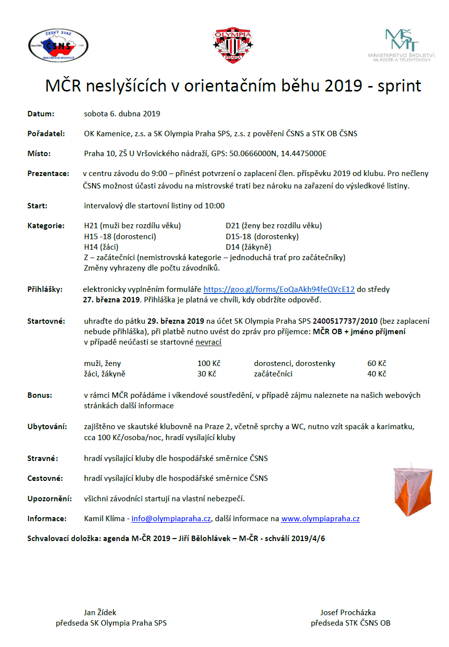 SK Olympia Praha vás zve na Mistrovství ČR v orientačním běhu ve sprintu, které se koná v sobotu 6. dubna v Praze ve Vršovicích. Propozici můžete stáhnout a zobrazit ve formátu
