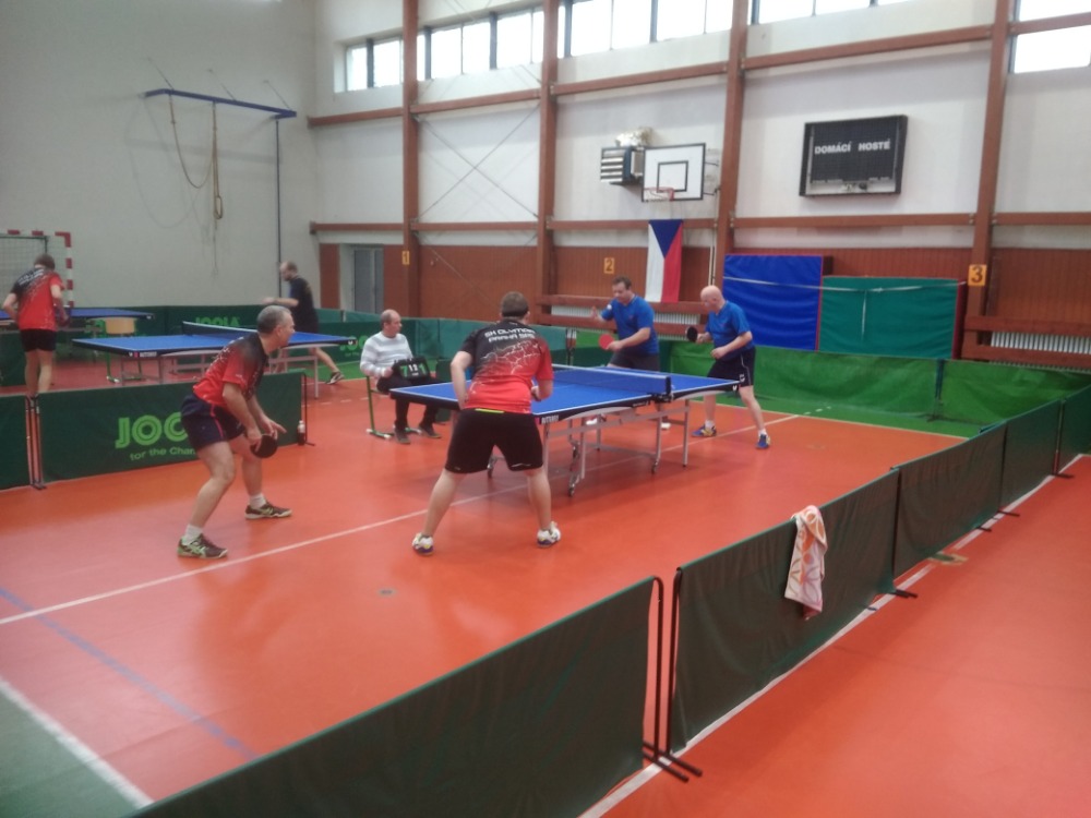 Další den v neděli se konala soutěž družstev, které se zúčastnilo u mužů 8 týmů a u žen 4 družstva. Od nás hráli dva týmy Olympia A ( Šlechta , Grym ) a Olympia B ( Šindler, Tancibudek ), u žen jsme neměli žádný tým. Po odehrání všech zápasů se na 3. místě umístila Olympia A a na 5. místě Olympia B.