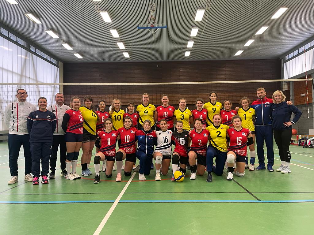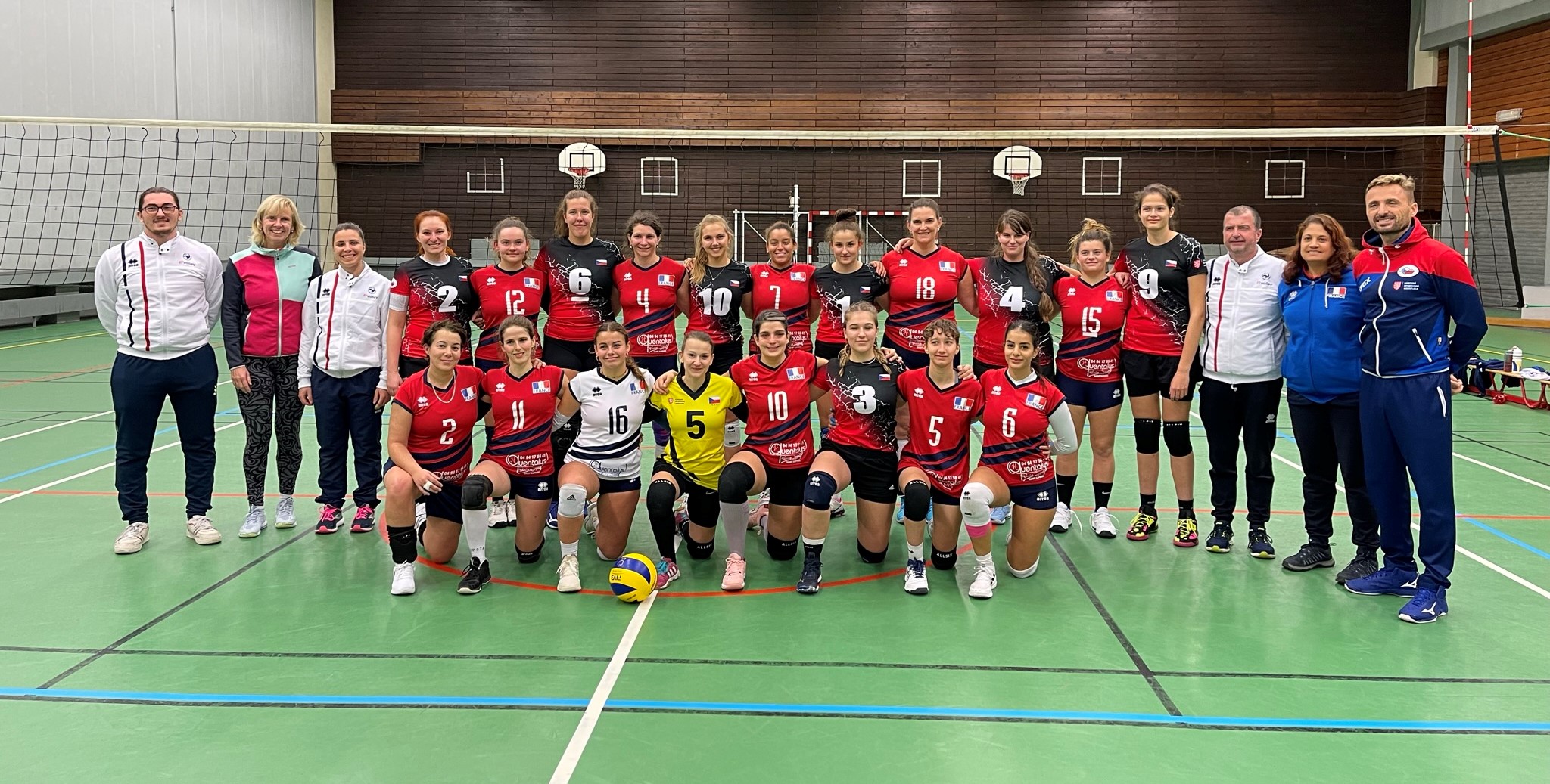 Účastníci: Anna Pavlovová, Oldřiška Žídková, Ivana Votípková, Julie Kapičáková, Kateřina Šmídová, Markéta Cabajová, Nela Šudřichová, Tereza Hojdyszová Trenér: Irena Pokorná Asistent trenéra: Jan Žídek, Šimon SkopovýO víkendu 9.-11.12.2022 měly hráčky šestkového volejbalu soustředění ve francouzském městě Vichy, specificky sportovním středisku CREPS. Tým odjížděl 8.12.2022 ve večerních hodinách dvěma mikrobusy z Prahy. Společně jsme dojeli v 8 hodin ráno do Vichy. První trénink byl 10:30-12:00 pod vedením trenérky Ireny Pokorné a asistenta Jana Žídka, ten jsme absolvovaly samy jako český tým. Vzhledem k náročné cestě jsme se spíše věnovaly lehčí technice – příjmu a obraně. Po tomto tréninku byl oběd a polední pauza. Od 15:00 se věnovaly reprezentantky tříhodinovému tréninku společně s francouzským týmem. Po společné rozcvičce se týmy rozdělily se do 2 skupin. Jedna skupina byla pod vedením Ireny Pokorné a druhá skupina pod vedením francouzského trenéra. Po polovině tréninku se skupiny vyměnily. Bylo to zaměřeno na příjem, obranu a útok. Po večeři byl domluvený zápas proti Francii. Tento zápas zakončily reprezentantky výhrou 3:0 (25:15, 25:14, 25:15). Během zápasu nám trenérka Irena Pokorná dávala úkoly – podání do jednotlivých polí po dobu celého setu (první set třeba jen do zóny 5 a další set jen do zóny 1, další set první servis byl do zóny 5 a zbytek servisů byly do zóny 4, atd). To samé se týkalo i útoku.