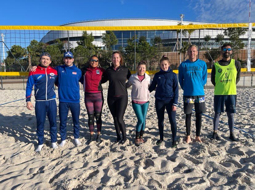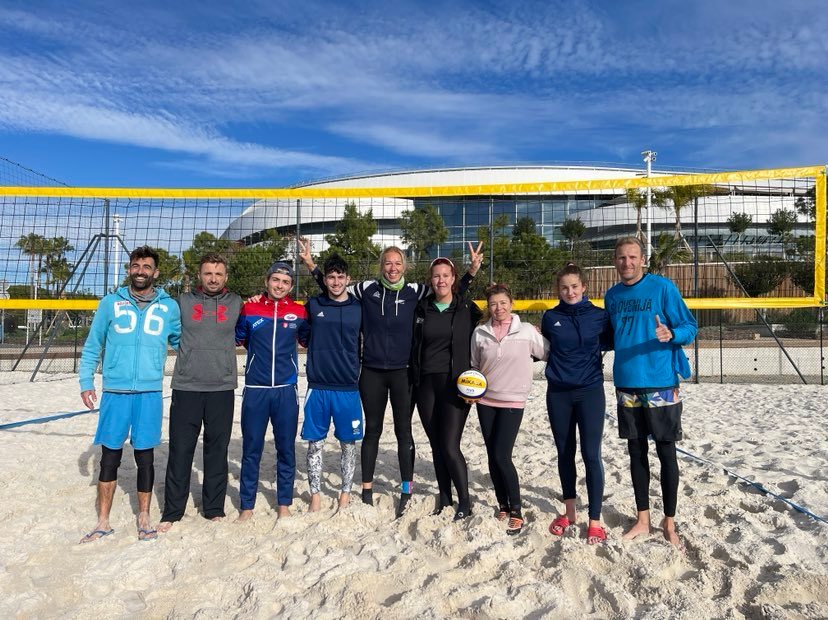 V pondělí už na nás vykouklo sluníčko a vítr byl sice o něco slabší, ale více se točil. Dopolední dvouhodinový trénink jsme se více zaměřili na příjem a nahrávku, právě kvůli točivému větru. K tomu se pak přidal i útok a blok. Na závěr jsme podávali na jednoho hráče a dohrávalo se, po 10 příjmech se hráči vystřídali. Po hodinové pauze jsme pokračovali dalším dvouhodinovým tréninkem, na kterém jsme se zaměřili více na herní cvičení – např. po servisu od trenéra musela dvojice periferně sledovat pohyb trenéra a první útok směrovat přímo na něj. Tento útok pak trenér odehrál na první přes a ta stejná dvojice musela složit balon. Dvojice se střídaly. A opět následovala hra na 2 sety. Dalších 20 minut jsme strávili kardio cvičením – různé kombinace skákání a běhu na písku bez míče.