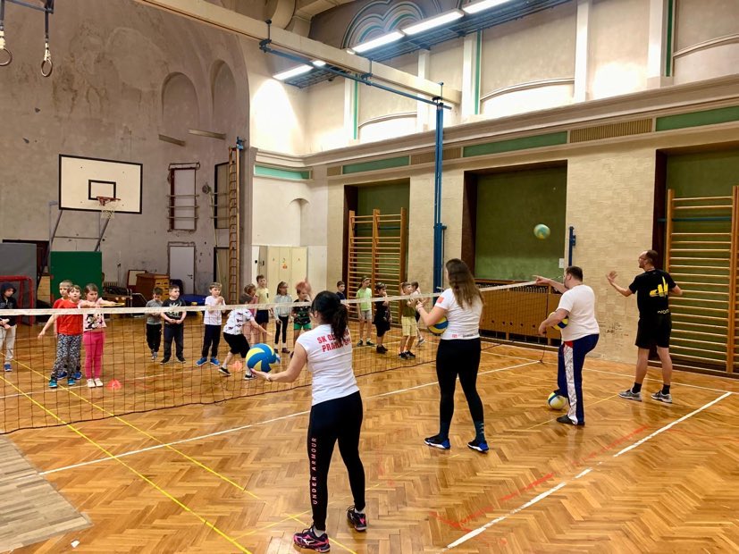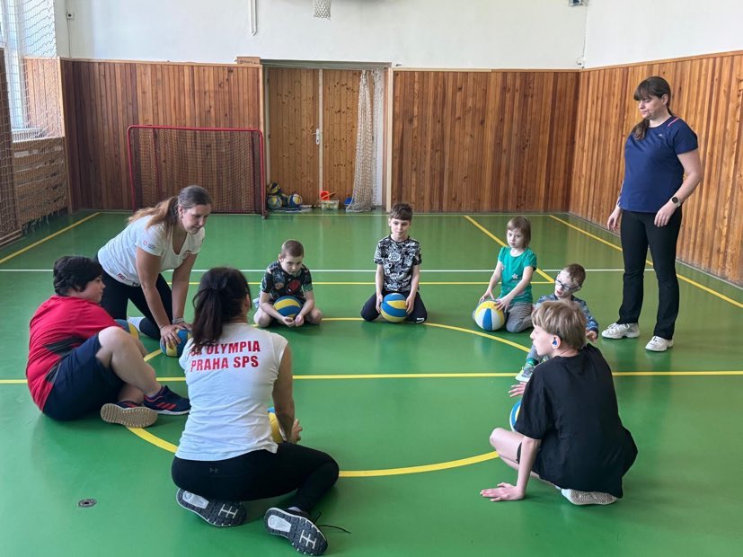 Po roce se trenérky Oldřiška Žídková a Anna Pavlovová opět vydaly do škol pro sluchově postižené - tentokrát kromě Ječné i do Radlic. V rámci tělocviku měly děti 1.-3. tříd možnost si vyzkoušet, jak může vypadat volejbalový trénink. Během jedné školní hodiny si děti zazávodily, vyzkoušely útok přes síť a dokonce i přihrávku bagrem.
