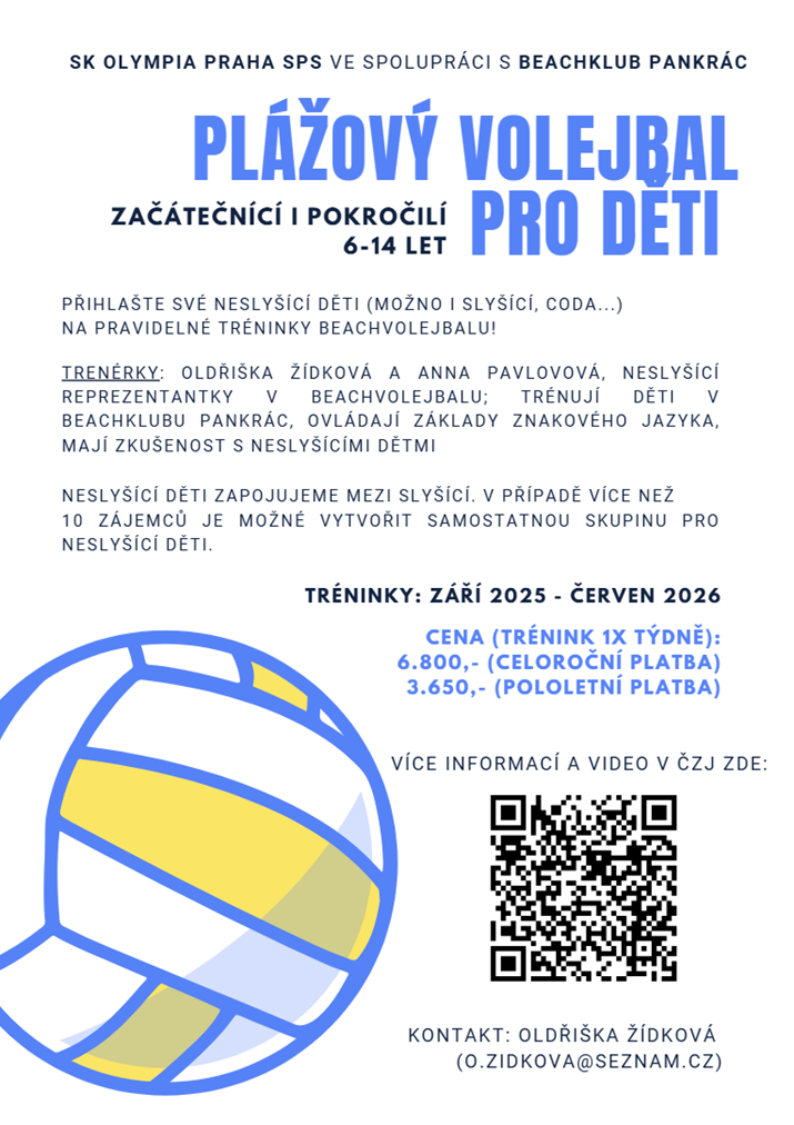 Pro zájemce ve věku 6-14 let je možné se od září 2025 přihlásit na tréninky v Beachklubu Pankrác, viz letáček níže.